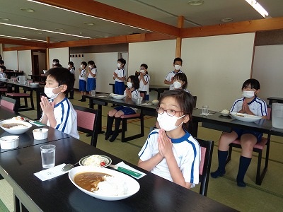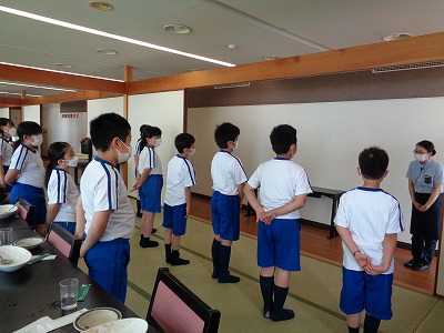 いつもはペアでしたが、今回は食事係さん全員で、食前の言葉を言いました。