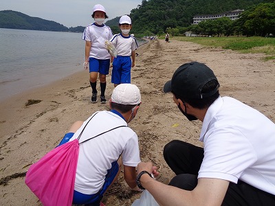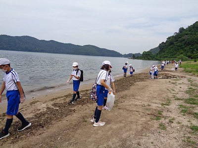 浜辺が少しきれいになりました。やはりプラスチックが一番多かったとのこと。4年生が「ゴミをゴミ箱にきちんと入れて焼却するのは簡単だと思うけど... そんなに難しいことなのかな?」とつぶやいていました。