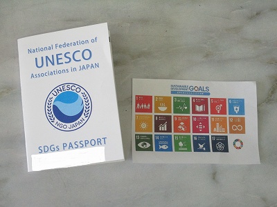 SDGsパスポートに、17の目標を貼り、「宮ヶ浜のゴミ調査・清掃活動」や、社会で学習した「くらしと水」についてまとめています。