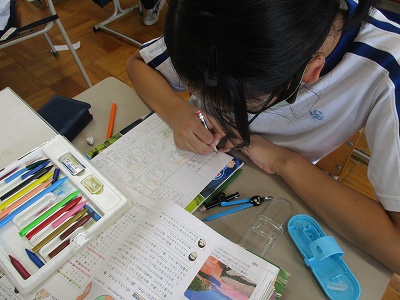 社会は、水産業の学習を終えたので、まとめの新聞作りに取り組んでいます。