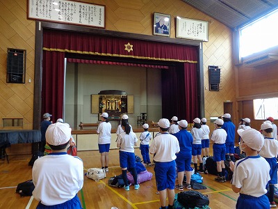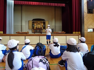 校長先生、髙石先生のお話を聞いた後、代表の児童が、自然教室の目標を発表してくれました。