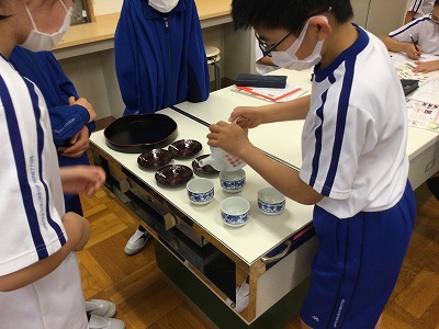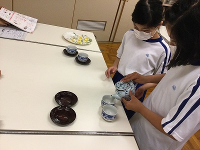 “急須(きゅうす)”を使ってお茶を入れるマナーを学習しました。