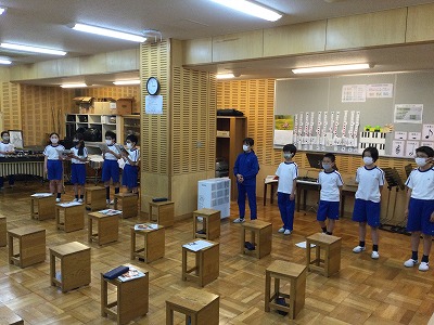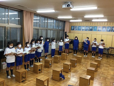 後半は「♪こいのぼり」の歌唱を練習しました。前の時間に文語調の歌詞を音読して、歌につなげる活動を進めていました。昔の言い方で歌うことによって、より力強く勇ましく感じて歌うことができます。
