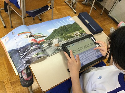 算数は、教科書を使って「小数のかけ算」の学習です。