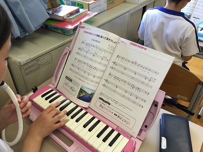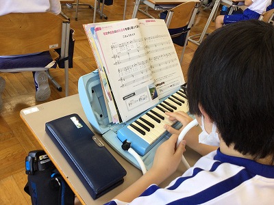 「ドミソ~」の「Ⅰの和音」に始まり「ドファラ(Ⅳ)」「シレソ(Ⅴ)」と、3種類の和音が、鍵盤ハーモニカで弾けるように練習しました。