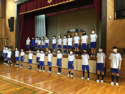 また、体育館で音楽会の仕上げ演奏をしました。今週から、朝根っこは発表練習に取り組んできました。