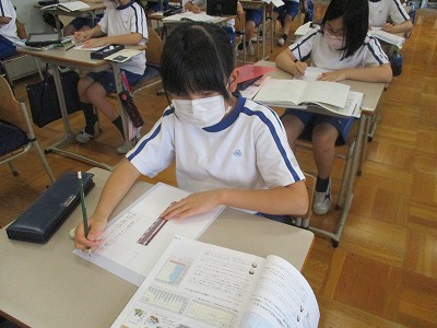正三角形は3角の大きさが等しい、二等辺三角形は2角の大きさが等しいなど、これまでに学習した事柄も使い、解答を導き出すことができました。