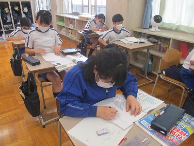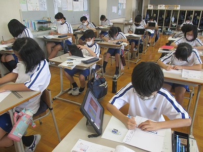 算数は今日も全員で「合同な図形」の学習を進めました。