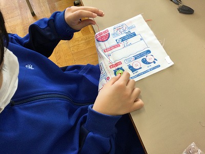 ボタン付けにも、玉結び・玉どめをきっちりと行います。こうして、同じ作業も違う場面で繰り返すことで、基本の裁縫技術が身についていくのですね。