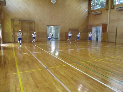 体育館といっても、この暑さ。しかし、自分の体力が続く走り、記録が伸びるよう頑張る5年生の様子が見られました。