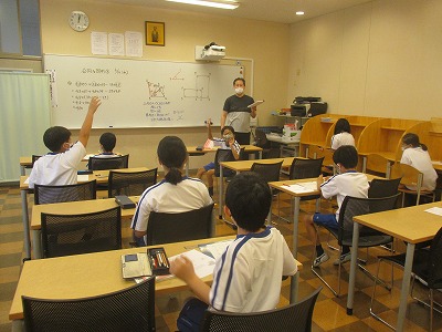 5年教室の習熟クラスは、最小公倍数、最大公約数を求めることに取り組みました。連除法を使うと、速く正確に求められることを昨日の学習で理解しました。