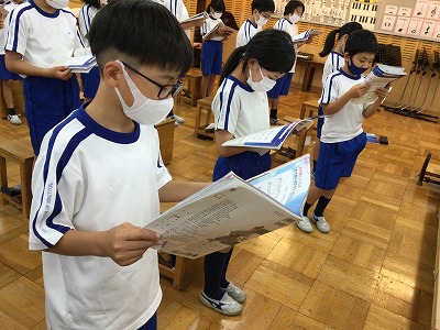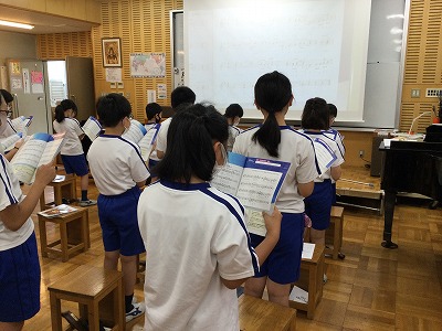 「♪ハローシャイニングブルー」の二部合唱にチャレンジする時間がきました。