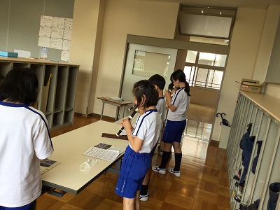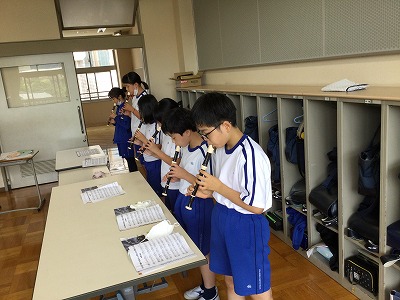 教室では、「♪星笛」のリコーダー奏のテストを行いました。待っている間は、「和音に合わせた旋律作り」を進めています。