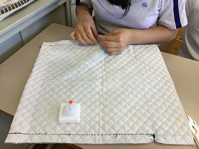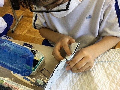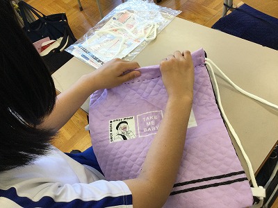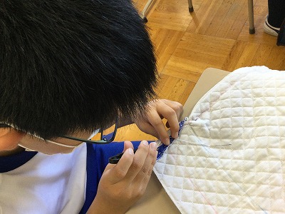 【家庭科「ナップザック作り・仕上げに向けて」】