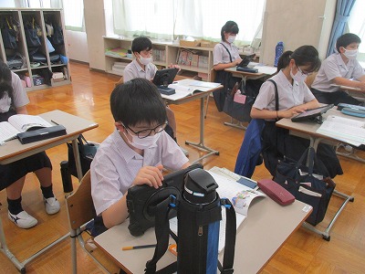 発展クラスはプリントを使って進めていますが、現在「整数」の単元を進めています。文章問題なので、しっかりと問題を把握して、公約数か公倍数かどちらを求めて答えるのか考えなければなりません。問題がたくさんあるので、少しずつ分かるようになってきているのですが、「難しい!」という声が聞かれます。