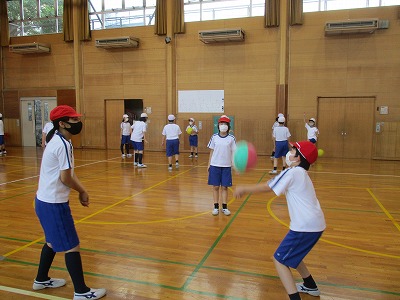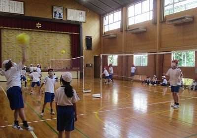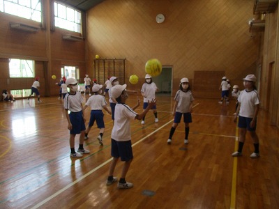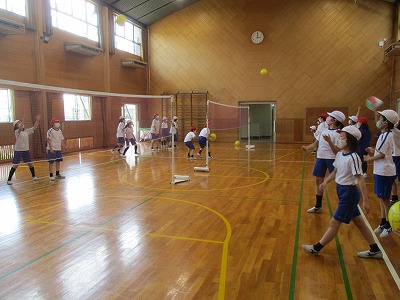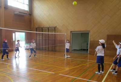 今週から体育では、体育館でソフトバレーボールに取り組んでいます。