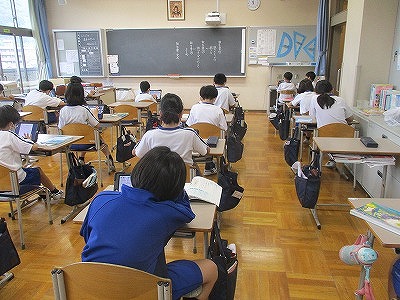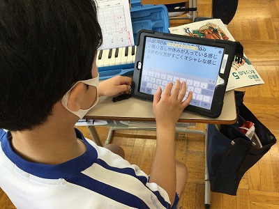 「おお~」と自然に拍手が起こる瞬間が何度も訪れ、5年生の力発揮が感じられました。ロイロノートに各自が感じたメロディの特長を打ち込んでもらっています。