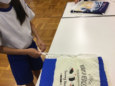 両側からひもを通しで出して…の意味が分かると、「あ~あ、そういうことか!!」と納得してくれました。