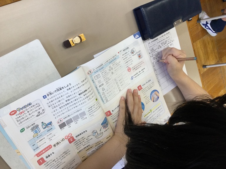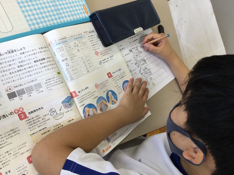 2学期始めの家庭科は、衣服の領域のまとめとなる、「洗濯実習」に向けた準備学習を進めます。