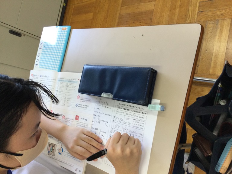 このあとは、“手洗い”による洗濯実習の計画を立て、実際に、自分の赤白帽を手洗いする実習を予定しています。家族の一員として、少しでも「洗濯」にかかわる活動(干す・たたむ・片付ける)に取り組んでほしいです。