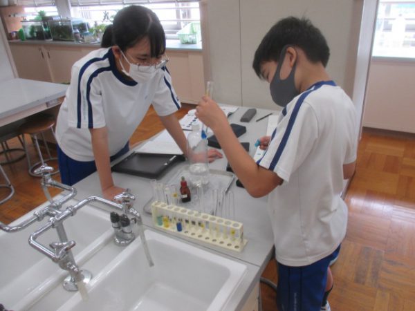 炭酸水を作った後、その液体をBTB液によって、酸性になっていることが判明しました。