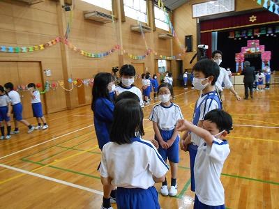 まずは、1年生をお迎えする前に2年生~6年生でパフォーマンスの練習をします。みんな、色々なパフォーマンスを考えていました。初めは緊張して小さかった班長の声も、しっかり話を聞いてくれる班のみんなに自信をもらって、どんどん大きくなっていきます!