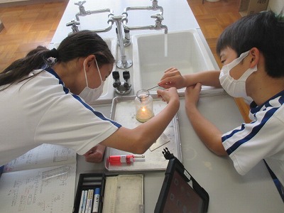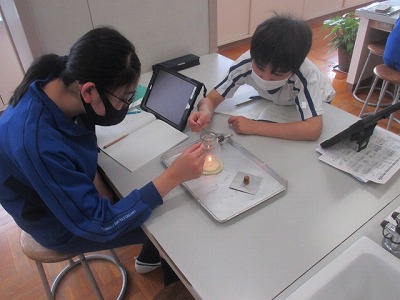 そこで、集気瓶のフタをとった状態では燃え続けるかを予想しました。