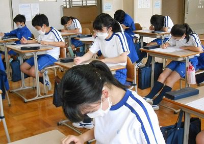 昼根っこタイムは、算数の単元「対称な図形」のテストを実施しました。