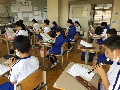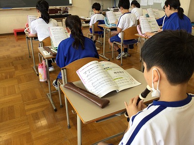 今日は、教室でリコーダーのメロディ奏や鍵盤ハーモニカを使った低音伴奏のパートを練習しました。