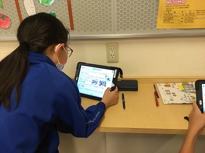 ロイロノートに「切る」「炒める」「味付ける」「盛り付ける」の各ステージで気づいたことや知ったことを記入し、写真や手書きのポイントを記して報告してもらいました。