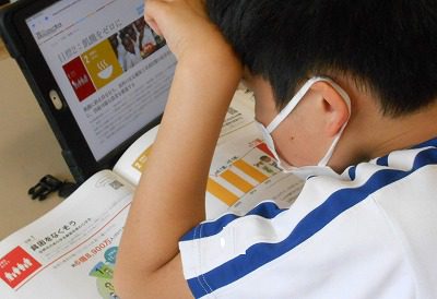 まずは、どのような問題を取り上げるか、ロイロノートで記事を探しながら調べる活動を行いました。自分の興味のある分野から探す人や、最近気になっているニュースから取り上げる人もいます。解決のためにどんな事ができるのか、まずはとにかく知ることからスタートです。