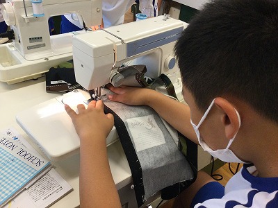 エプロン製作でミシンを使います。