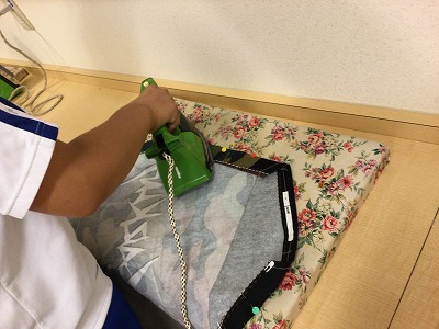 折り目を付けて、まち針を打ち、アイロンをかけておくことは、これまでの実習と変わりません。ミシン縫いがスムースに進むための念入りな準備作業です。