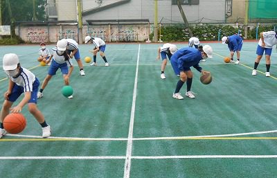 まずは、基礎練習からのスタートです。バスケットボールは、少し重いので、ドリブルをすることも簡単ではありません。ボールを自分の手に慣れさせるために、ドリブル練習やシュート練習はとても大切です。