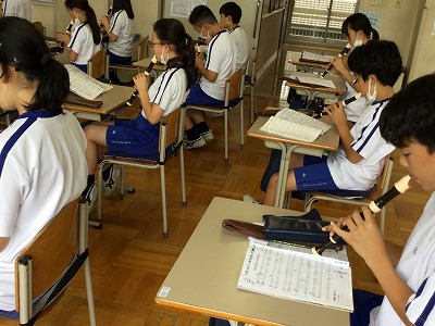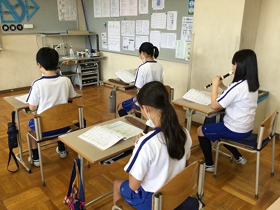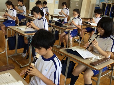 さて、昨日に引き続き、今日は「リコーダー奏」のテストを行いました。指定曲は「♪ザ サウンド オブ ミュージック」のメロディパートです。