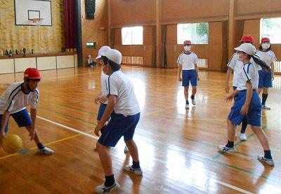 今日は、暑さ対策のため、屋内でバスケットボールに取り組みました。基礎練習からスタートし、3分の練習試合をくり返しています。