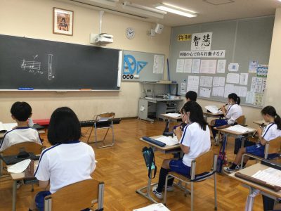 教室では「♪ザサウンドオブミュージック」のリコーダーの二重奏に取り組みます。