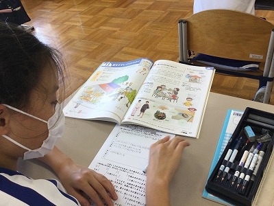 教科書に載っている夏の生活の様子について、その工夫を見つける活動から学習を始めました。“打ち水”や“じんべい”など、夏を快適に過ごすための伝統的な工夫にも気づき、直射日光を遮る工夫や風の通りなど、このあとの学習に触れる気づきも見られました。