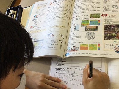 学習の後半は、資料として提示されている「グリーンカーテン・ひさし」や「クーラーの使い方」「伝統的な“音”に注目」などを参考に、自分の考えをまとめる活動を行いました。