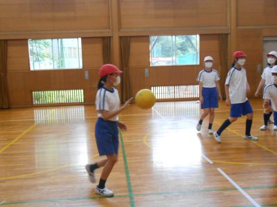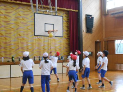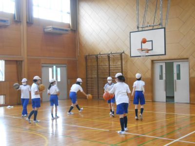 今日は、それぞれが上達してきたので「ダブルドリブル」や「トラベリング」などのルールをしっかりと守ることをめあてに、ゲームを行いました。
