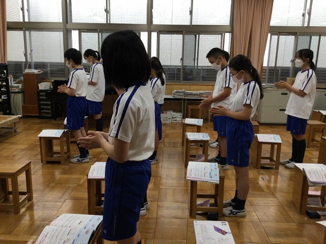音楽室では「聖歌」「校歌」の斉唱を行い、新しい曲「ロックマイソウル♪」を紹介しました。短い歌ですが、3つのパートに分かれていて、3部合唱にチャレンジしたり、「独唱」「重唱」「斉唱」など、歌い方の特徴を体感することにも最適な歌です。