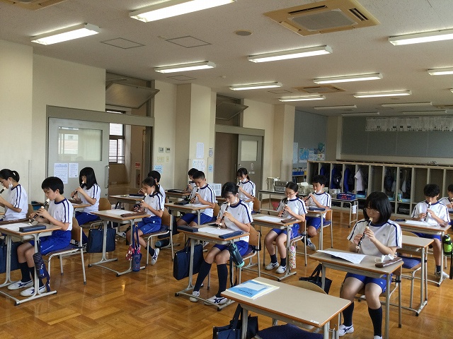 さらに、2学期の運動会で“鼓笛隊”が実現できることを願って、1年ぶりに文教キッズの行進曲を2曲、リコーダーで演奏する時間を持ちました。