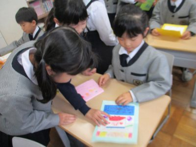 1年生に手作りおもちゃで遊んでもらう会を企画し、招待状を作って渡す計画を立てました。