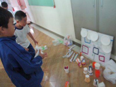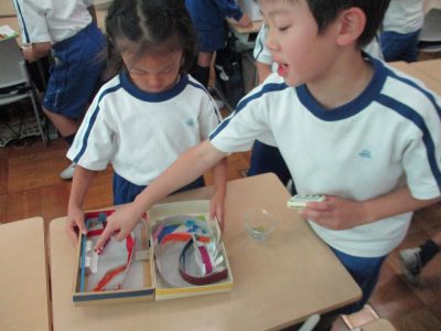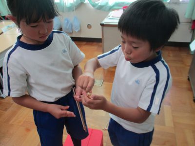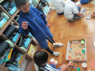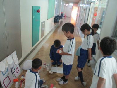 やり方やポイントの数を伝え、おもちゃ遊びが盛り上がるようにがんばりました。