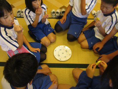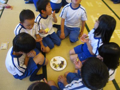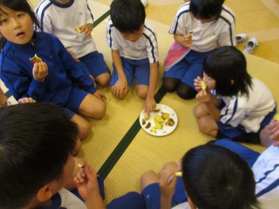 ご覧下さい!あつあつの焼き芋をほおばる2年キッズを!