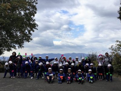 本気の山登りに向け、ネックウォーマーやパーカーも装備して学校を出発です!