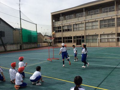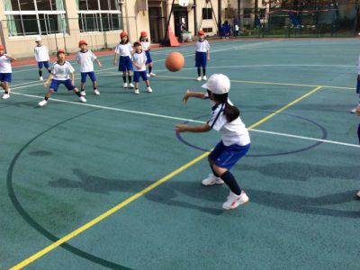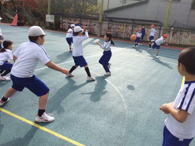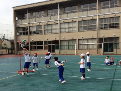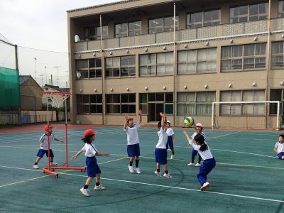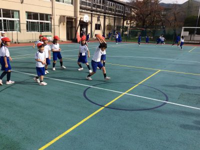 シュートのワクワクと面白さと、受け止められるかも…のドキドキと、両方の面白さが分かり始めた今日の体育です。