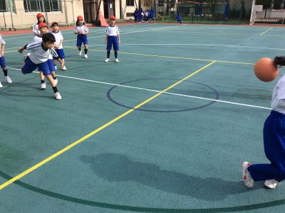 このボールゲームの直後は、「みんな遊び」係さん企画のドッジボールを行いました。