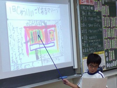 スクリーンには、自分で描いた“あったらいいな”の名前と絵が映っています。