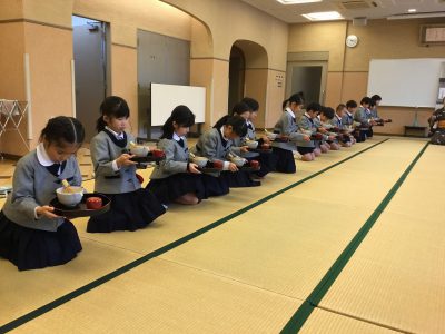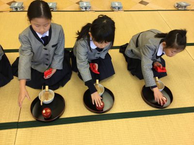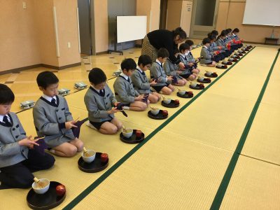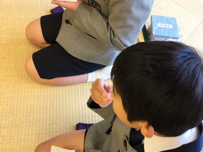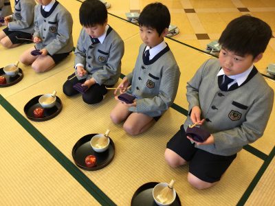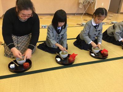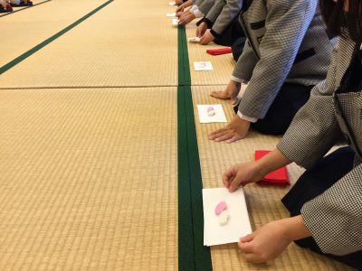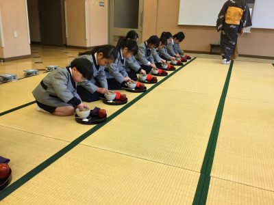 先週より、お茶会のお作法を教わり、きょうは、そのおさらいの日です。